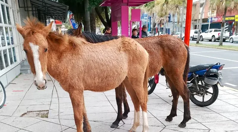 PARA RESGUARDAR A LOS ANIMALES Y MANTENER EL ORDEN DEL TRÁNSITO, SECUESTRARON DOS EQUINOS SUELTOS EN LA VÍA PÚBLICA