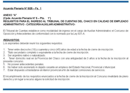 El Tribunal de Cuentas junto con el Poder Judicial inició hace meses un concurso, que está en su etapa final porque el grupo de postulante que pasó a la instancia final ya rindió el examen y semanas se conocerá el orden de mérito.