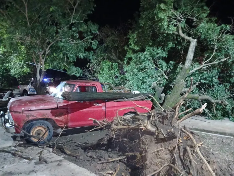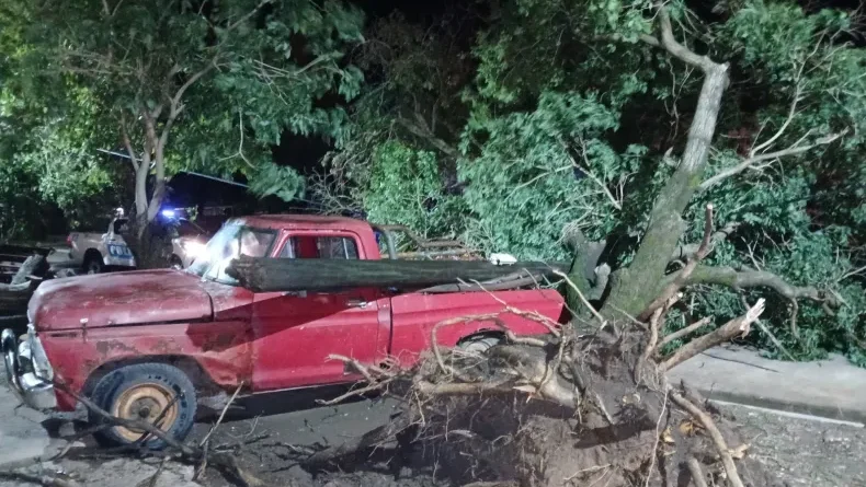 Un árbol y un poste de telefonía cayeron sobre una camioneta estacionada tras un fuerte temporal. En Resistencia prevén otra jornada de calor intenso y tormentas aisladas, mientras que el alivio llegaría el domingo.