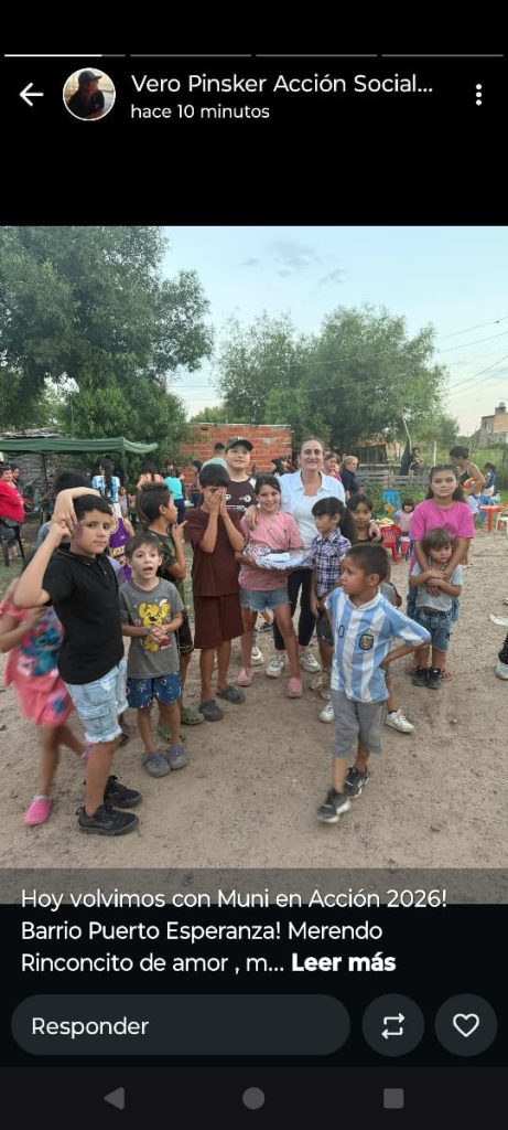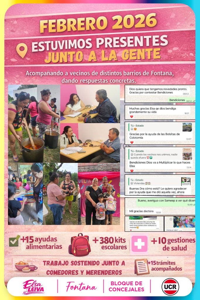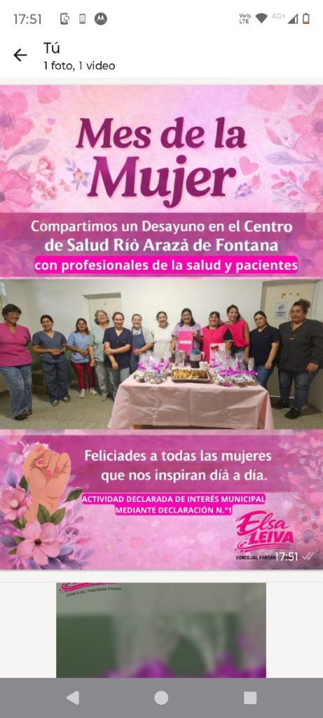 La concejal de Fontana Elsa Leiva visitó los estudios de los protagonistas TV radio resistencia en el programa informativo resistencia que se emite de lunes a viernes en esa emisora Leiva manifestó Eduardo trabajo que se viene llevando adelante en la localidad del abrazo cordial donde el trabajo en territorio es el más fuerte al acompañar a la situación de cada familia que atraviesa en la actualidad Desde niños , jóvenes y adultos además adelantó las diferentes actividades por el mes de la Mujer .