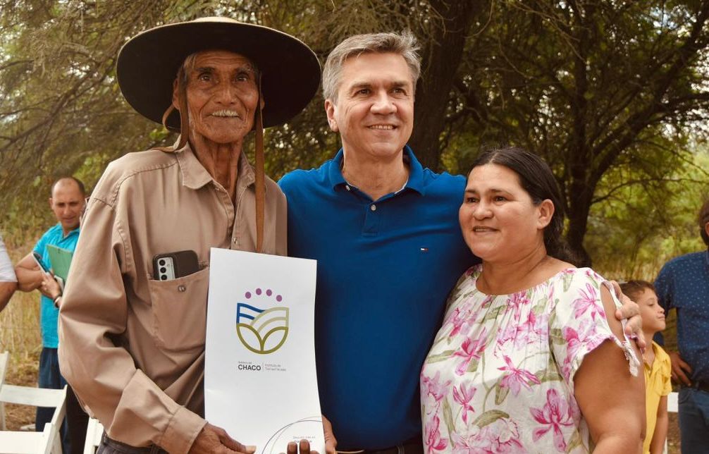 Este sábado, en Presidencia Roque Sáenz Peña, el gobernador Leandro Zdero encabezó la entrega de títulos de propiedad y adjudicaciones de tierras fiscales a productores. Algunos, esperaron hasta 40 años para llegar a este día”.