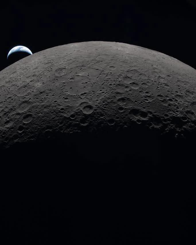 Los astronautas a bordo de la cápsula Orión de la NASA captaron a nuestro planeta ocultarse detrás de la cara no visible lunar. También tomó una gran imagen del satélite natural durante el eclipse de Sol que lograron observar.