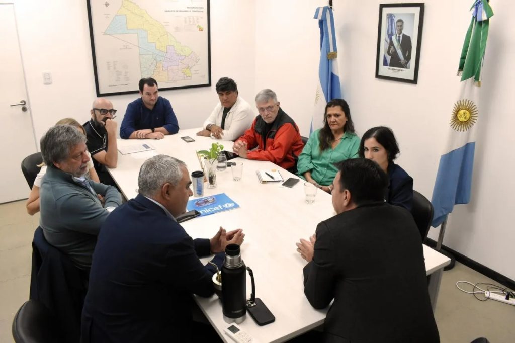 El secretario de Asuntos Estratégicos, Marcos Resico y el ministro de Desarrollo Humano, Diego Gutierrez, abordaron, junto a autoridades del Consejo de Coordinación de Políticas Sociales del Ministerio de Capital Humano de Nación, el oficial a cargo de la Oficina de las Naciones Unidas de Servicios para Proyectos (UNOPS) en Argentina, Ignacio Lacasta, y el especialista en Primera Infancia de UNICEF, Javier Quesada, el Proyecto de Cisternas de Agua para el Impenetrable, sumando, en esta etapa, al trabajo que ya vienen realizando, a través del convenio con UNICEF.