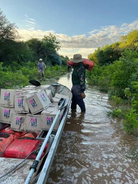 Con lanchas, móviles y un despliegue coordinado, fuerzas de seguridad y organismos provinciales lograron llevar alimentos y forraje a siete parajes incomunicados. El traslado incluyó tramos a pie y embarcaciones cargadas al hombro.